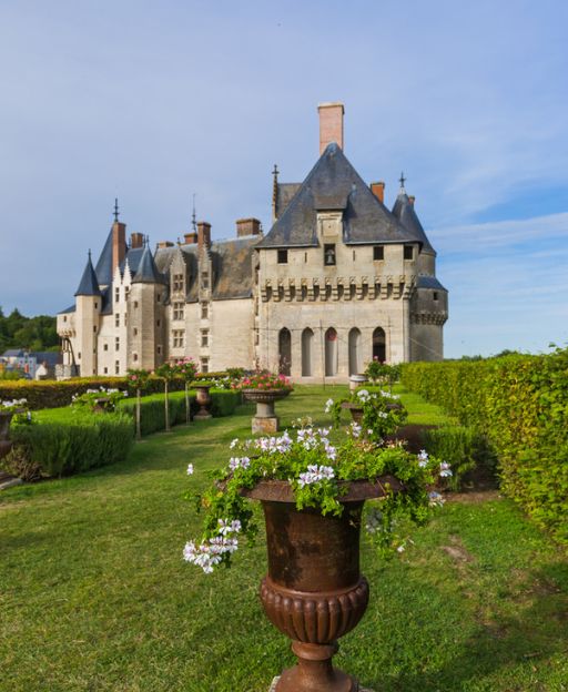 Langeais Castle in the Loire Valley, surrounded by formal gardens
